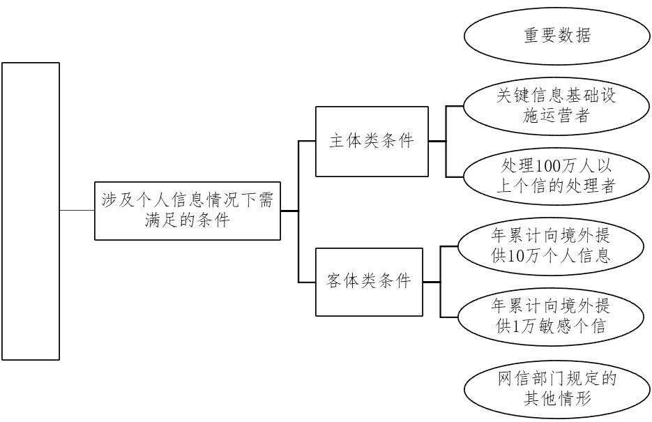 《指南》第一条重申了《评估办法》第二条(结合第四条)有关适用数据出境安全评估的范围。其明确了在出境数据涉及重要数据的情况下,安全评估是强制性的;当出境数据涉及个人信息的情况下,安全评估需要满足一定前提条件。为了方便读者理解,本文通过如下图示说明安全评估的适用范围: